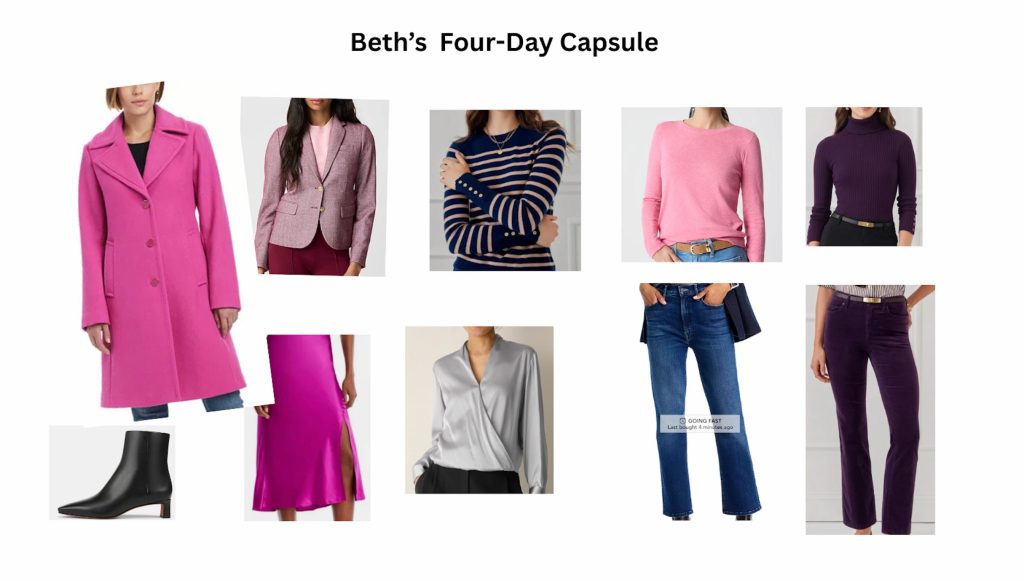 This blog will provide additional Indiana Women’s Stylist packing tips and delve more deeply into exactly which clothes I took, wore, and what worked. I ended up picking some colors that would go together to make some outfits — starting with my coats. My workout coat was pale lavender, and I had a coordinating hat […]